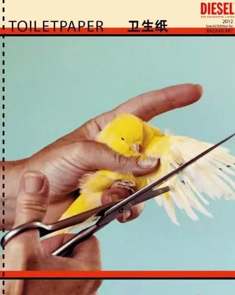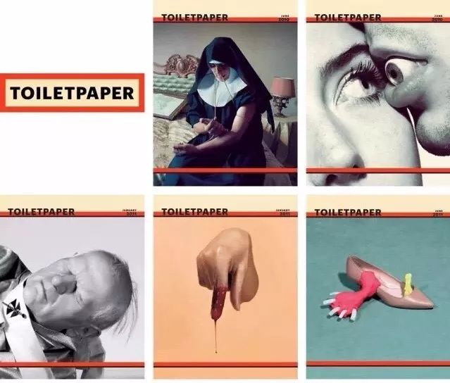 艺术家的作品有不少与厕纸相关,而提起卫生纸,不得不让人想到名为《Toiletpaper》的杂志。两位创始人合作的这本杂志是诡异和怪诞的结合体,吸取了艺术家Maurizio Cattelan的奇思妙想和摄影师Pierpaolo Ferrari的独特构图风格。