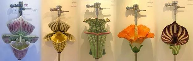 美国艺术家克拉克·索伦森(Clark Sorensen)从大自然中获得灵感,将男用小便器设计成为花草形状的。水仙花型、木槿花型、兰花型,不同造型的小便器有着各自的特点。索伦森说:“因为大多数人认为小便器既丑陋又很脏,所以它们正是适合去美化的东西。”