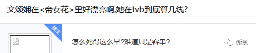 可惜之后,文颂娴几乎就再也没有接到主角的角色了…全部是配角,虽然很多剧都大火,但她也却只能是剧红人不红。和佘诗曼合作过《七姊妹》,从此两人也成了好闺蜜。