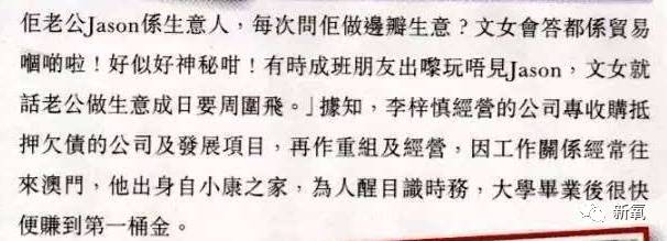 这个男人就是她后来的老公李梓慎,据说也是香港一个富商。具体的工作大概是收购抵押欠债的公司和项目,进行重组和经营。虽不及其他明星所嫁的豪门,但是经济条件应该也说得过去。