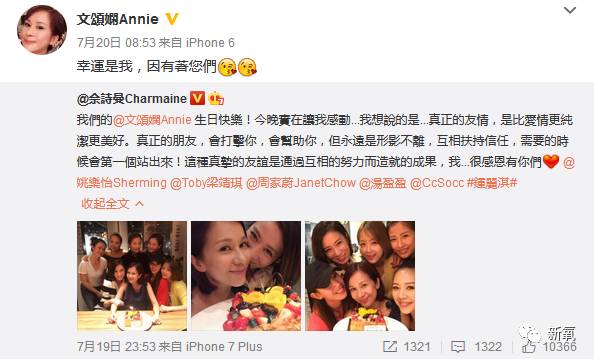 虽然不知道李梓慎欠债的情况是否属实,但佘诗曼敢说出这话,也是真的很讲义气了啊。两个人至今关系依然很好。佘诗曼每年都会召集一帮姐妹为文颂娴庆祝生日。