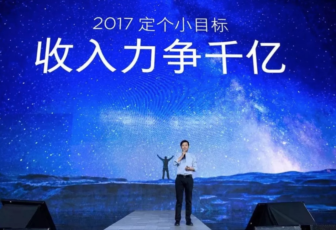 图:雷军在小米年会定下收入破千亿的"小目标"