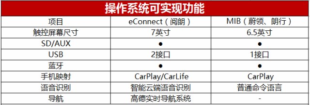 三车的顶配车型在功能上值得注意:一汽-大众蔚领不提供6.5英寸MIB触摸屏幕,全系均需要进行选装,因此对于车辆的CarPlay等互联功能在不选装的情况下是无法实现。上汽大众朗行则在顶配车型上提供6.5英寸MIB触控屏。对于阅朗顶配车型,则搭载7英寸eConnect智能互联系统,能够实现多项互联功能。值得注意的是,其还搭载人工贴心服务的安吉星系统以及实用性更高的高德实时导航。从小细节上,车辆还设置了2个USB刚需接口。
