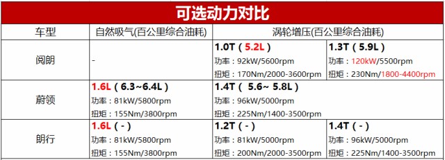 在动力类型选择上,蔚领和朗行均提供了自然吸气发动机和涡轮增压发动机两种车型,这对于有自然吸气情结的人也还是一个很好的选择。