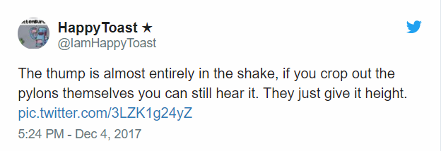 差不多可以说是晃动导致了这声巨响,因为就算把电线塔裁掉,也还是可以听见声响。电线塔只是让图片变长了一些而已。