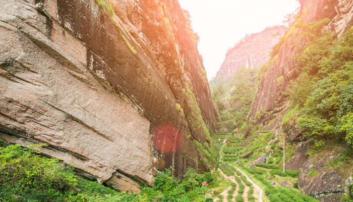 牛栏坑,位于武夷山景区三坑两涧核心地带,风轻、坑深、岩秀、花香、水渗、光柔的微域典型环境,是岩茶自然生长的乐土。