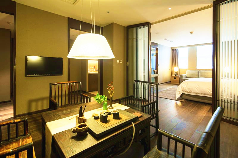坐落于福建省泉州市安溪县的悦泉行馆就是这么一个只有17套庭院别墅的精品度假酒店,它是全球奢华精品酒店(Small Luxury Hotelsof the World™)在中国仅有的11个联盟成员酒店中的一员。悦泉行馆隐匿于山环水抱之间,拥有独具特色的徽派及闽南建筑及日式庭院,同时因为处于茶乡,酒店还到处散发着别出心裁的茶元素,也给住客设计了别开生面的茶文化探索内容。然而由于经营模式和理念与大多数中式精品酒店相同,酒店开发商并不急于把它当作一门生意来经营。“我们酒店最初是所属集团的一个配套度假设施,主要做较为私密的高端商务度假接待,所以开业7年也很少对市场大力推广,”悦泉行馆运营总监张福生告诉界面新闻,“酒店工作日的生意相对冷清,周末会有不少闽南地区的度假客光顾,当然在任何时候我们也欢迎来自全国甚至全世界的客人。”