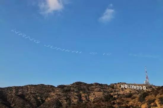 王俊凯粉丝在好莱坞上空送出的生日祝福