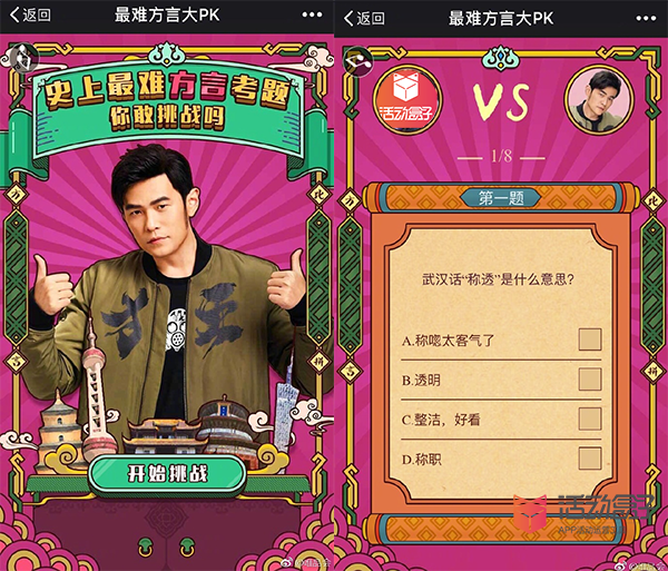 杰伦小公举在方言老师们的教授下,学习方言学得怎么样了呢?唯品会随后上线了“最难方言大PK”H5活动。当用户答对所有所有题目,就可以解锁杰伦小公举的方言鬼畜短视频。