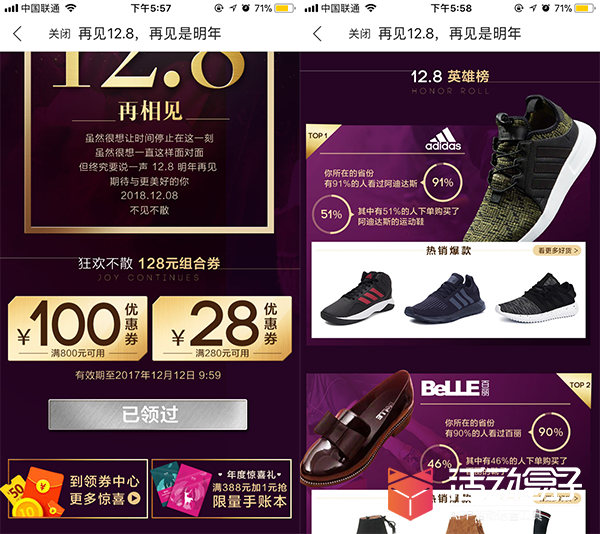 也有一些后知后觉的用户,会在活动快结束的时候才闻讯而来,唯品会的活动运营人员也对这些用户进行了关爱,规划了12.8英雄榜的页面,一方面展示了整个活动期间销量较高的品牌和款式,另一方面也是帮助这些后知后觉的用户在最短的时间内做购买决策。