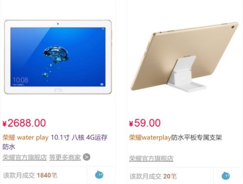 另外,我注意到,荣耀天猫官方旗舰店显示,Waterplay、Waterplay专属支架月成交分别为1840笔(不是台)、20笔,也从侧面证实Waterplay销售情况并不理想,要知道,Waterplay专属支架销量与Waterplay市场表现正相关,后者单月销量不到2000笔,让人大跌眼镜。