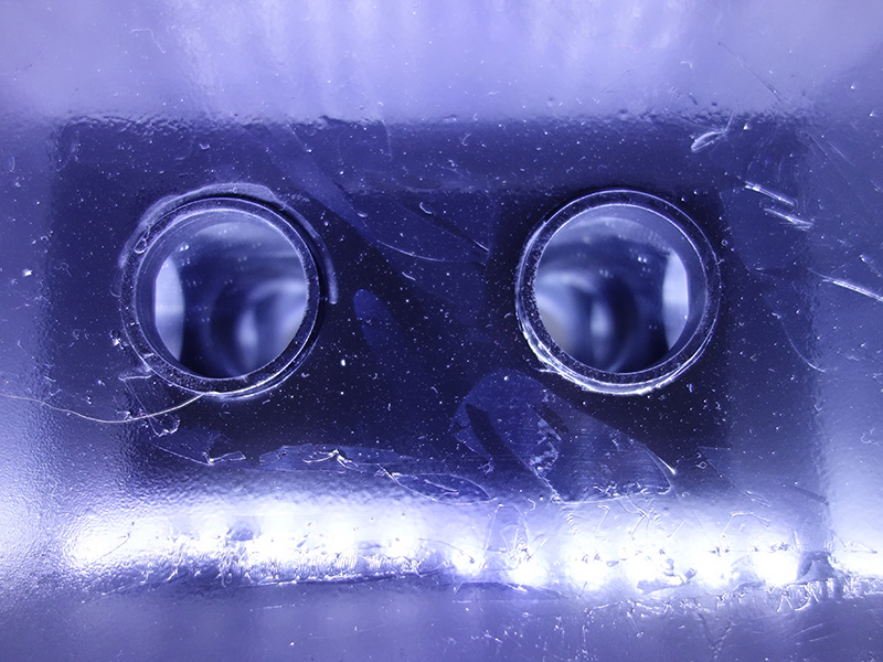 蒋竹韵装置作品《当左眼看见右眼》,这个小装置,通过一段U形镜的反射,让人们的左右眼可以单独互相对视,用最简洁的视觉技术跟人们开了一个小玩笑。