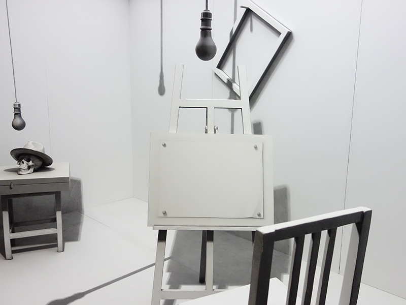 姜吉安《两居室》。他也在这个空间里也制造了视觉的错乱,让原本自然的视觉习惯产生强烈的不自然感。