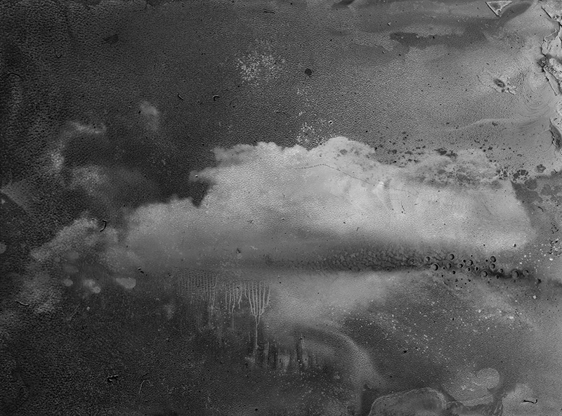 骆丹作品《何时离去》。他的作品牢牢的把握了摄影最原始的因素:光和时间。将亿万年前形成的地貌在底片上显影,然后在暗房里再次投影到大尺寸的湿版底板上,制作而成。