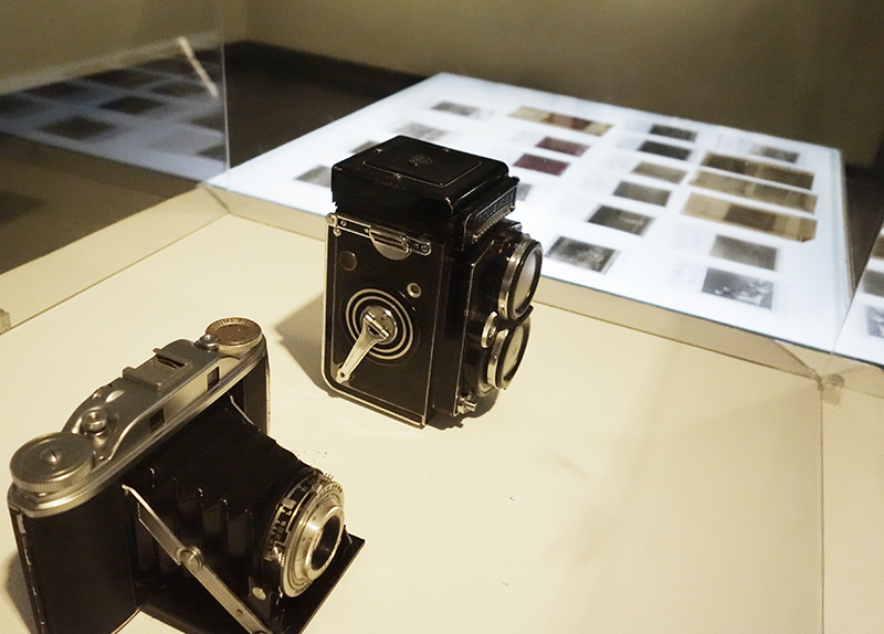 蒙敏生(中国香港)曾用过的相机和拍摄的底片。