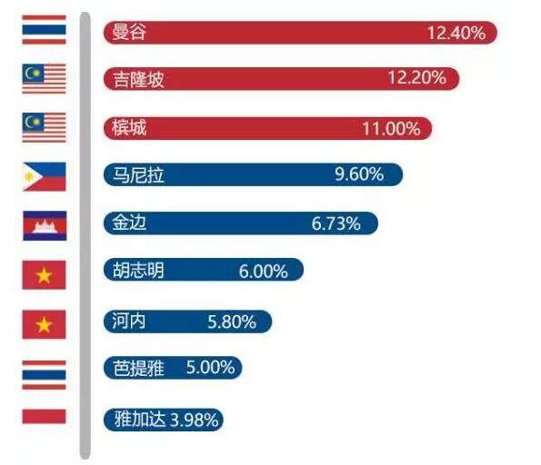 ▲东南亚各国主要城市近5年房价涨幅排行榜