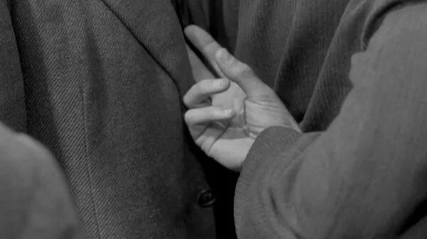 很显然,此处的布列松正在实践他自己对于电影语言语法性的某种创新,用他自己的话说,一个无用物可能改变了一下位置就不无用了。同样,在拍摄角色对话的时候,我们也只被允许看到一张面孔及跟这张面孔平行的躯体,躯体就像一道时近时远的墙。