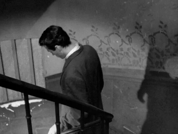 在地铁这么一个布满眼睛的地方,镜头小心翼翼地推近,手中的报纸越折越小,既能做扒窃时的掩护也可能成为一个麻烦。旁白铺路,影像搭桥。在第一次疑似面对警察的时候,Michel躲在牢房般的出租屋里,由皮鞋触地的噪音完成了叙事。