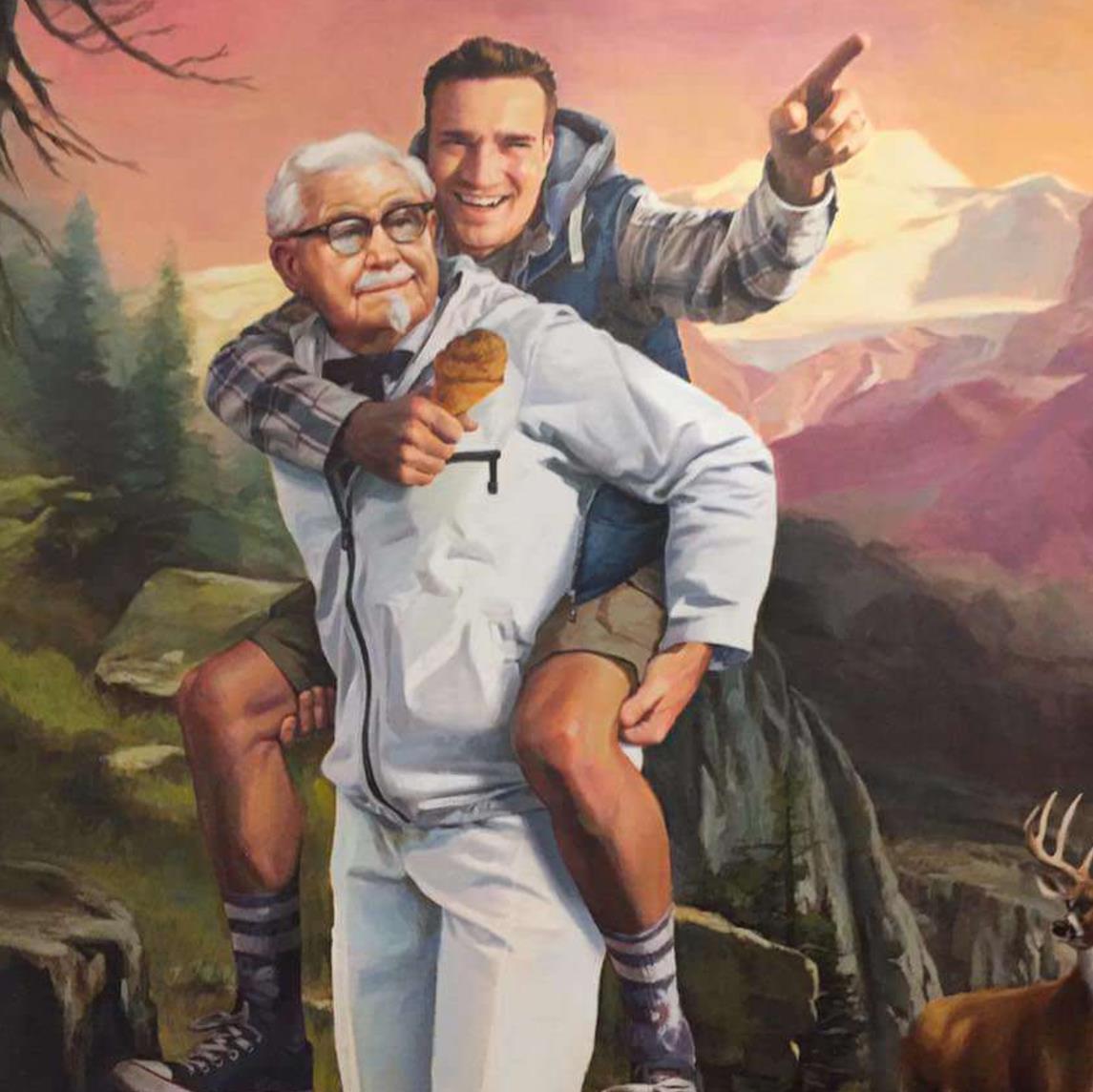 肯德基可能是最擅长撩粉丝的肯德基可能是最擅长撩粉丝的品牌之一。上个月,他们刚刚为一位粉丝创作了一张画,画中桑德斯上校背着这位粉丝。只因为这位粉丝在Twitter上指出KFC一共关注了11个人,五个叫斯派丝spice(香料,香辛料)的女性,和六个叫赫柏herb(香草,药草)的男性。而这可能是肯德基经典炸鸡的秘密配方。