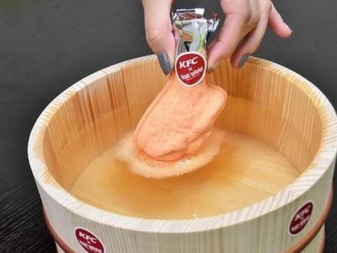肯德基还擅长推出周边来和粉丝互动,此前日本肯德基在Twitter上抽奖送出炸鸡味的入浴剂,也获得了很高的人气。
