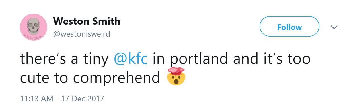虽然店铺迷你,可却在社交网络上引发了不小的讨论。显然迷你肯德基把网友们都给萌到了。