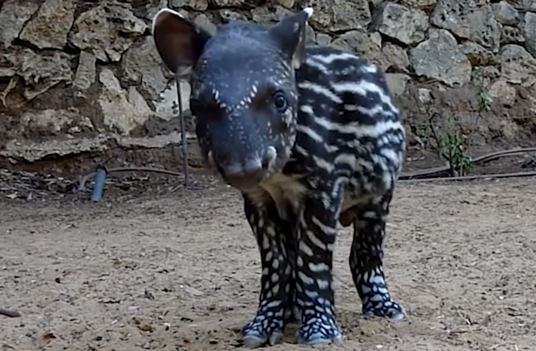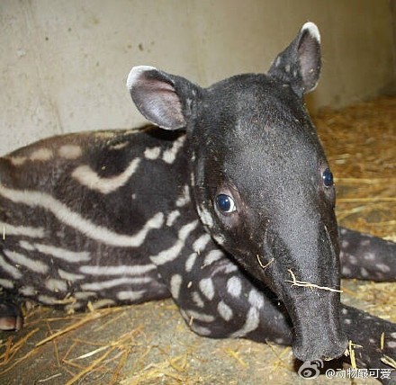 貘分好几种,幼年的时候长得都差不多,身上都带有花斑,长得介于丑和萌之间。▼