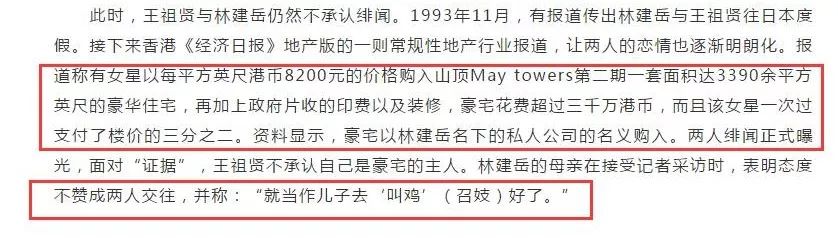此时还传出林建岳母亲不赞成两人交往,还称王祖贤为