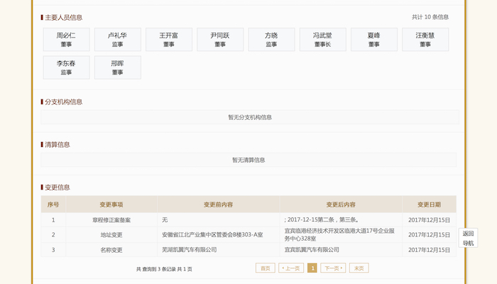 国家企业信用信息公示系统查询结果显示,12月15日,芜湖凯翼汽车有限公司已变更成宜宾凯翼汽车有限公司,地址也由安徽省江北产业集中区管委会改为宜宾临港经济技术开发区临港大道17号企业服务中心。