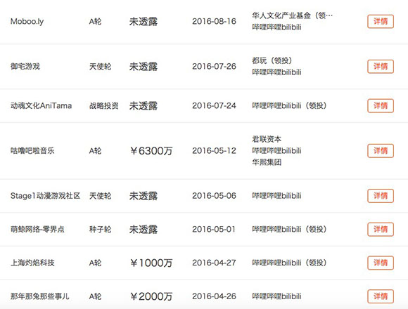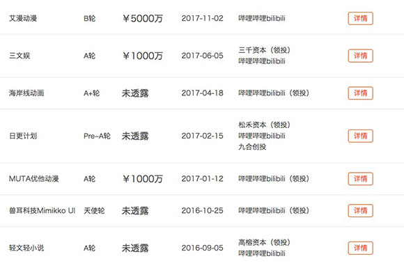 多数用户没有注意到的是,B站已经投资了超过30家大大小小的公司,投资金额从百万到千万不等。而类似今天这种3000万买下LPL战队的手笔不在少数。以下投资数据均来源于IT桔子: