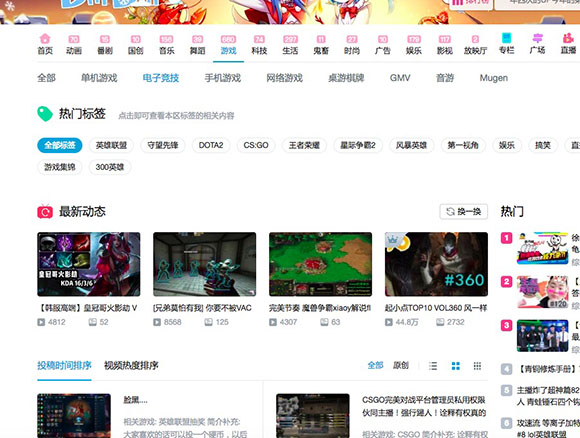从官网上看出,B站加大了对游戏页面的运营,上线了很多新款游戏的直播内容。