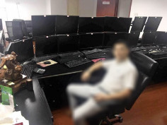 照片中的他,身着米色格纹短袖衬衫、浅灰色长裤,跷腿斜倚在一张黑色皮质靠椅上,斜嘴浅笑;在他身后的办公桌上,15台显示器位列上下两排。在桌子的左边,摆放着一个木质貔貅——中国民间盛传这种凶猛瑞兽可以辟邪、镇宅。