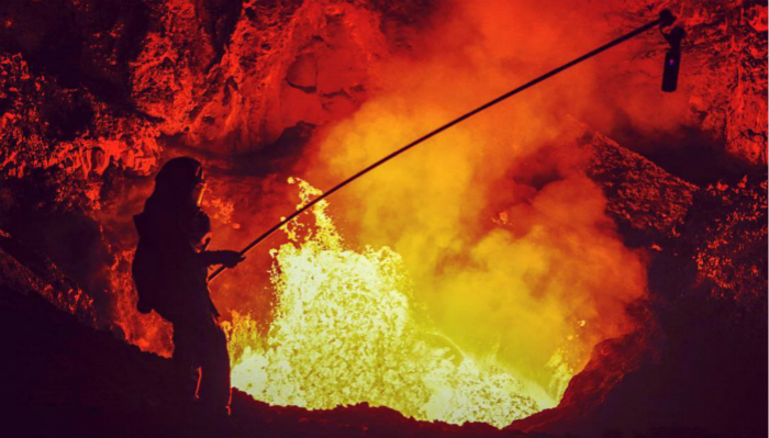 Lohmann的照片让我们见识了活火山的威力,她在接受BBC采访时的描述让我们进一步了解在活火山里面是怎样的体验。“我在一座活火山深处走了600米,就像进入了地球的心脏。从某种程度上说我好像被困在那条隧道里,我非常非常渺小,当向外望时,能感觉到天非常非常高,”她说,“它真的是活的。”她身旁就是1200度的熔岩湖。