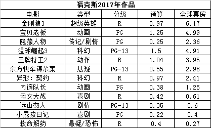 再反观福斯。就电影版块来说,它是一家挺有创新冲动的公司,作品多数面向成人观众。