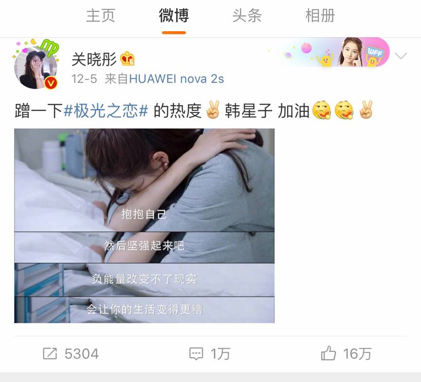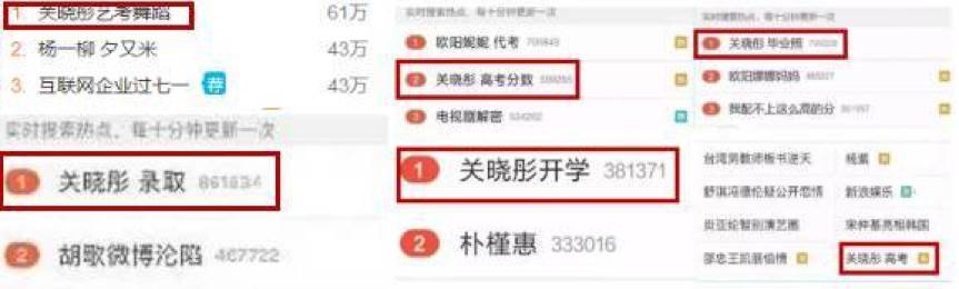 回顾这一年,关晓彤的团队为微博做出了卓绝贡献,简直值得赠送一个包年服务:公布高考成绩,热搜;开学,热搜;吃瓜,热搜;军训,热搜;自拍;热搜;豪车,热搜;吃粉,热搜……