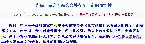 曹磊:京东唯品会合并存在一定的可能性(北京商报——京东大本营)