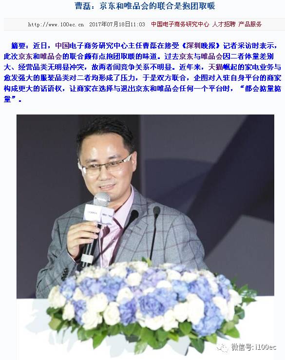 曹磊:京东和唯品会的联合是抱团取暖(深圳晚报——腾讯大本营)