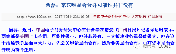 曹磊:京东唯品会合并可能性并非没有(广州日报——唯品会大本营)