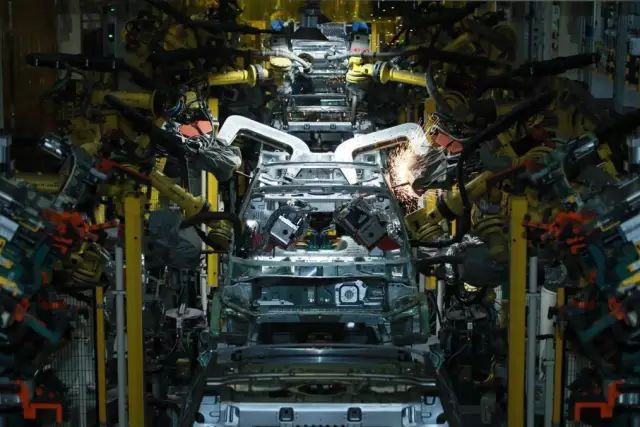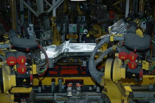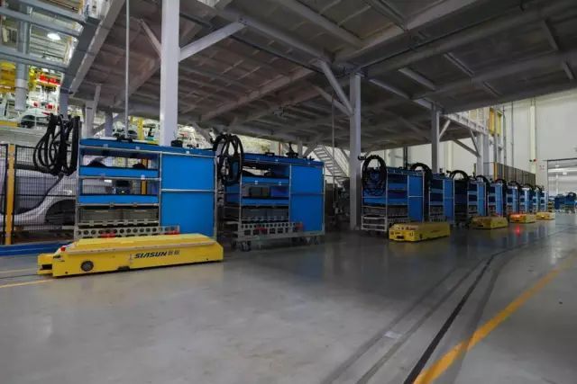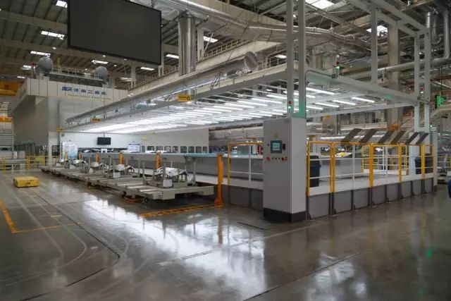 同样,工厂内采用的随行工装工艺也进一步强调生产效率和生产质量。通过大/小随行工装系统,进行地板分拼及总成、侧围分拼、白车身传输等。不仅让工厂的运转更加顺畅,同时全自动化的设定也会减少工人的生产强度。