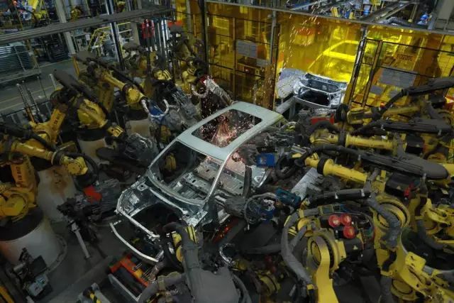 面对众多的高新技术,我们可以用四大关键词来总结:高强度钢材构造、100%全自动焊接工艺、高效柔性化生产以及全自动化物流输送。