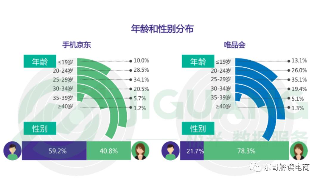 虽然京东年度活跃购买用户2.66亿,女性用户早就超过了男性用户,但大部分的销售额都是男性用户贡献的。虽然唯品会年度活跃购买用户6000多万,也有上千万男性用户,但绝大部分的销售额是女性用户贡献的。根据极光大数据监测手机京东的女性用户占比40.8%,而唯品会是78.3%。