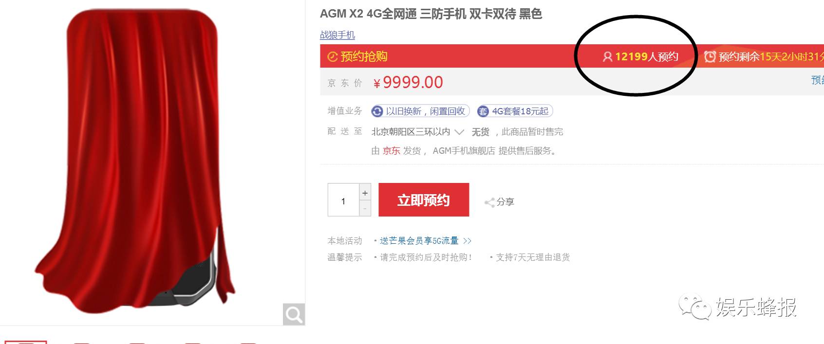 ▲ 电影上映后,AGM升级版的真机还未发布时,便已经在京东上以9999元的盲约价开启预售,而且预约上万。