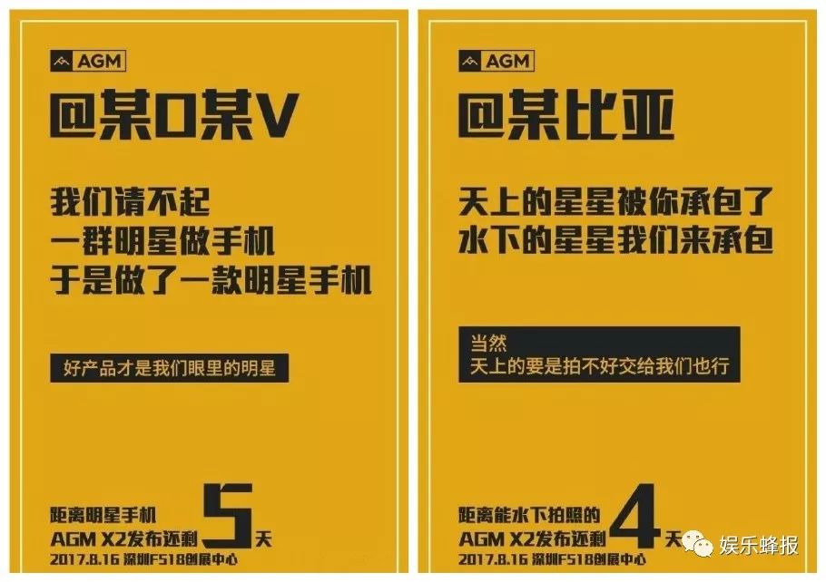 AGM主打户外,号称是全球户外手机NO.1,有调查显示,全球三防手机中,每10台就有3台是AGM制造。而在国内受众市场却很小。《战狼》将AGM手机领向了中国观众视野。电影上映一个月后的8月16日AGM就举办了新机发布会,收获颇丰。
