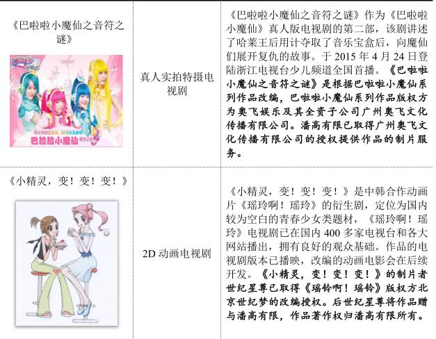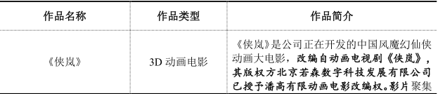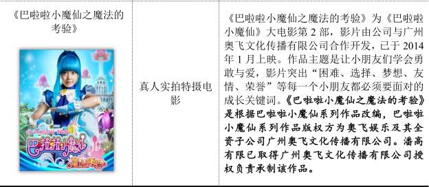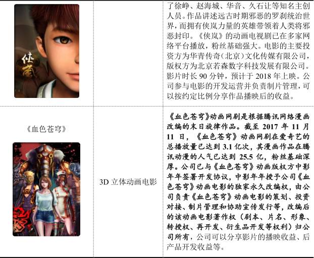 攀高文化凭借专业的电影制片水准和资源对接能力,开发了真人实拍特摄电影《巴啦啦小魔仙之魔法的考验》,正在开发动画电影《侠岚》,即将开发人气达 22亿的漫画《血色苍穹》改编的同名电影。攀高文化借助知名IP的粉丝资源及协同效应,不断增强自身品牌及知名度,增加持续取得后期运营收益的可能性,提高作品成功的概率,也使公司未来在知名IP电影项目的拓展、开发中具备强有力的竞争优势。