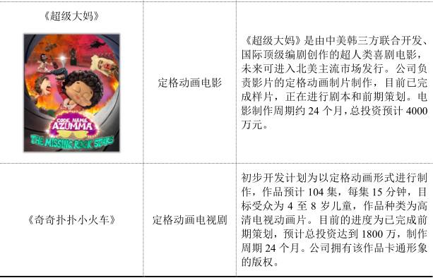 公司拥有资深的行业专家,优秀的策划团队,致力于动画电影项目的储备和开发,并与行业内优秀的导演、编剧、主创人员长期保持良好的合作关系,为公司日后的长期战略发展储备了一批优质的项目。