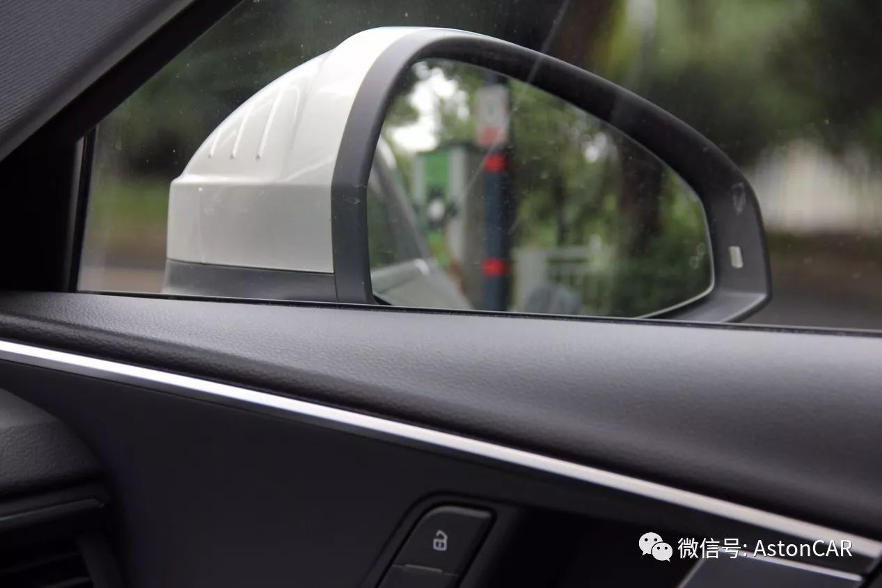 当我左右晃动脑袋观察视野时,我第一时间注意到的是右侧后视镜的位置有些过低,我试着抬高座椅,车窗边缘依然会阻挡一部分后视镜,加上后视镜面积本身较小,所以我认为右侧视野表现不是特别好。