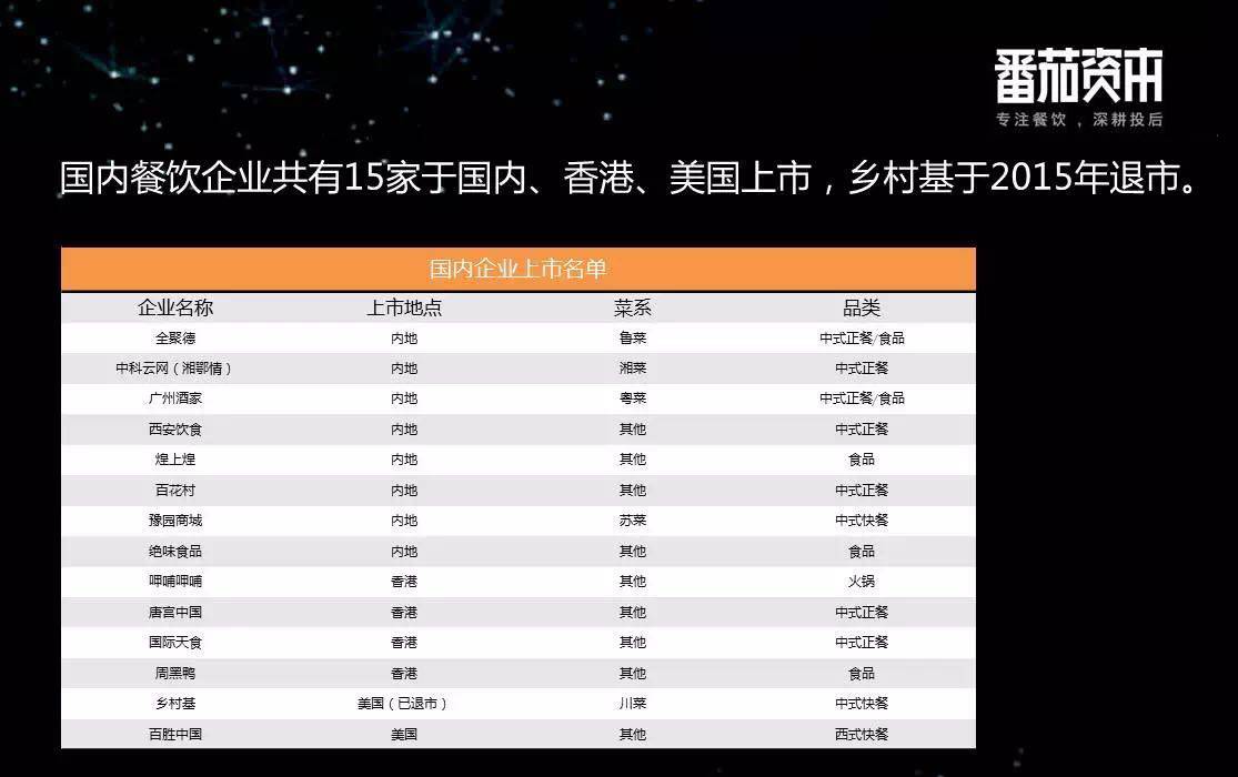 国内上市的餐饮企业一共只有15家(点击图片看大图)