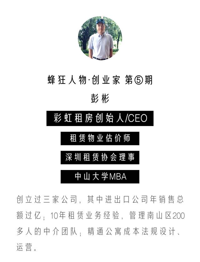 在深圳租房高需求的市场下,这个“二房东”做得顺风顺水。2015年,彭彬经历的一次波折使他开始第三次创业。这一次创业显得大胆、刺激,因为这个在传统行业打滚了十来年的人,一脚跨进了互联网…