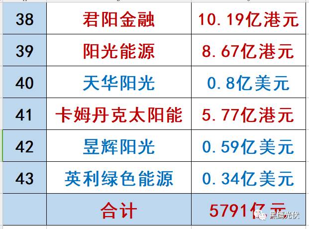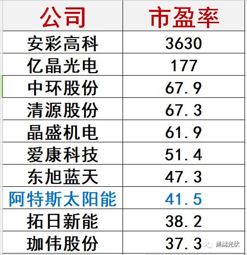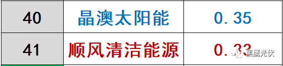 据黑鹰光伏统计,41家公司中有9家公司市净率低于1,这9家公司都来自于美股或港股。最低的三家公司分别为顺风清洁能源、晶澳太阳能和兴业太阳能。