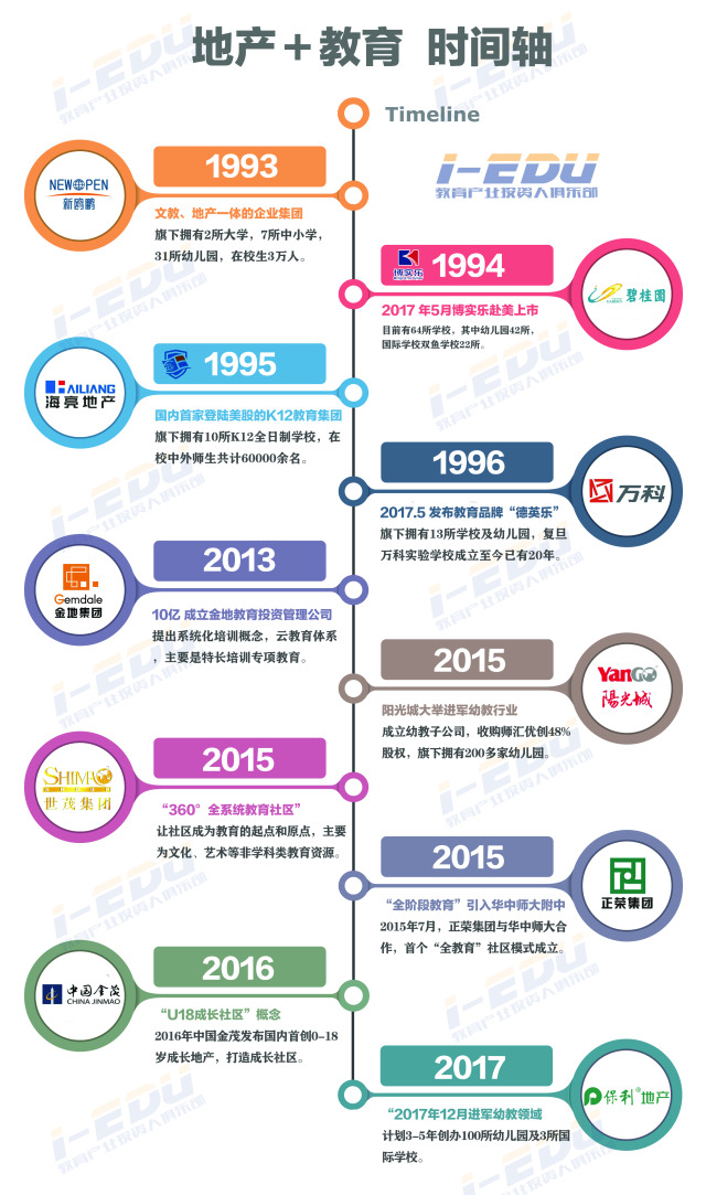 近日保利地产公布,未来3-5年公司会在40多个城市逐步储备并创办100所幼儿园,100家青少年宫,3所国际学校。跑步入场的地产商们,2018年将如何演绎“后房地产时代”与教育的故事?