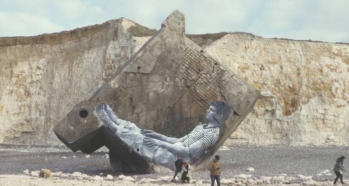 瓦尔达想要在海边的巨石上绘制裸体图像,JR调侃她"你好像很喜欢裸体啊"。